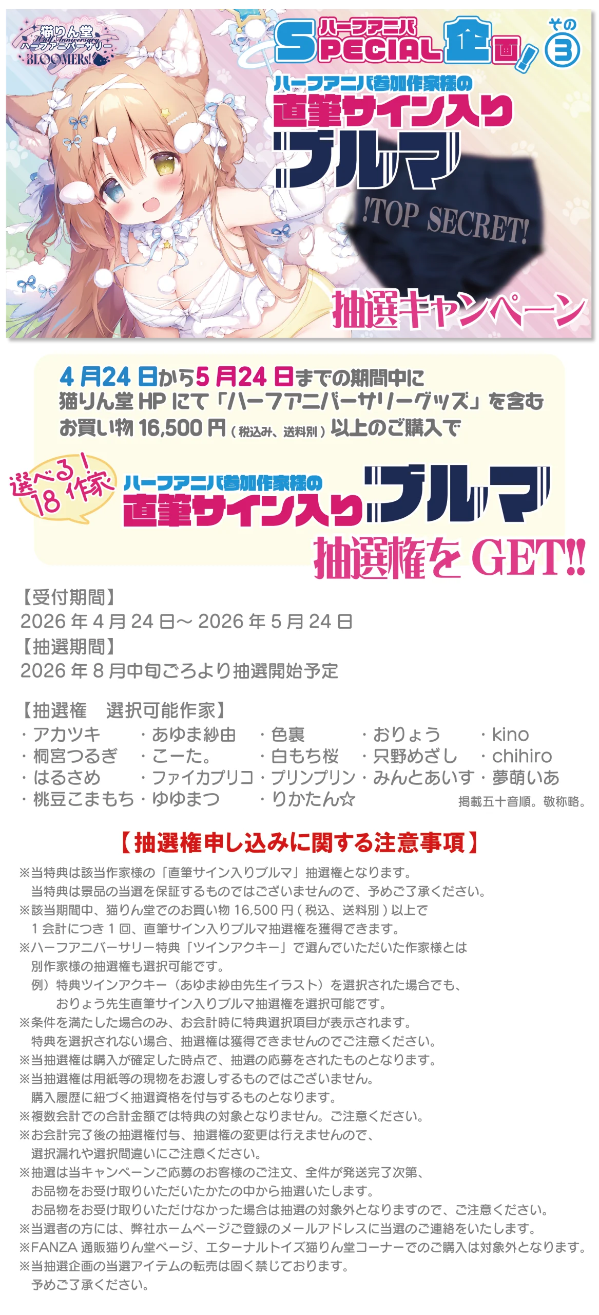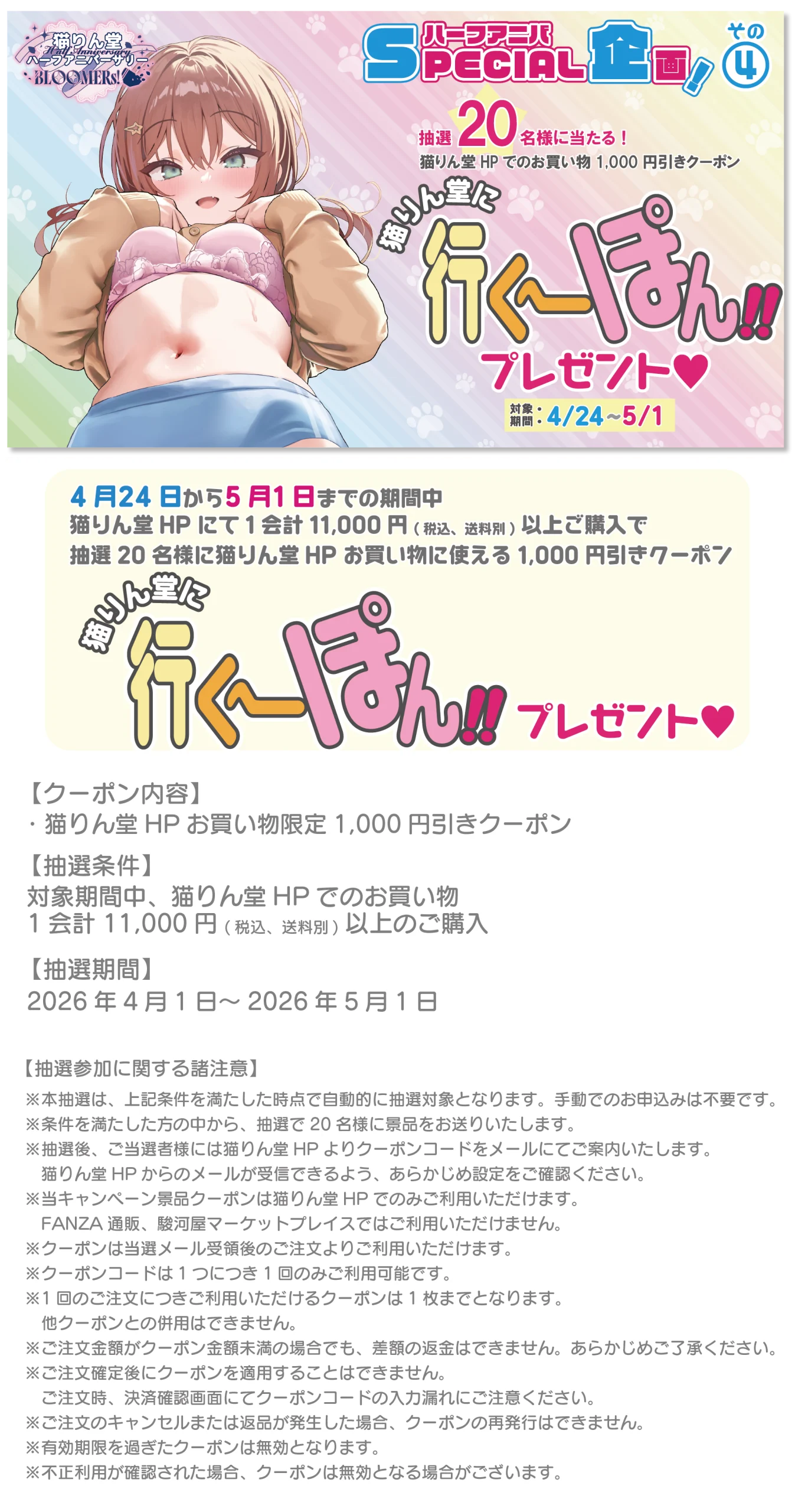 ハーフアニバーサリー開催中!!☆各特典の条件をチェック☆